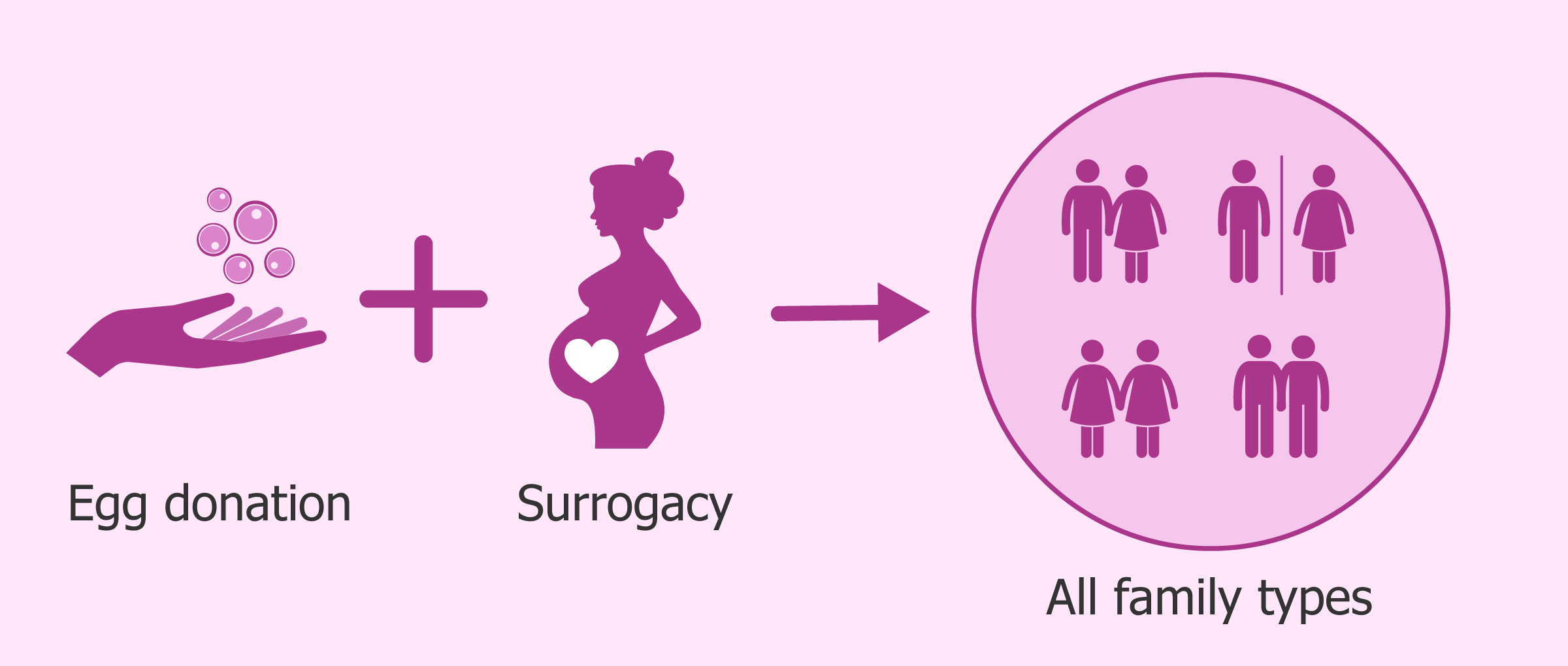 If the Woman is infertile, has poor quality eggs and hence is not able to contribute to creating an embryo by IVF, the embryo is created by taking the eggs from an egg donor and fertilizing with the Intended Father’s eggs. This embryo is transferred to the surrogate. The surrogate will not be biologically related to the child, neither will be the Intended Mother. The child will however be biologically related to the Intended father.